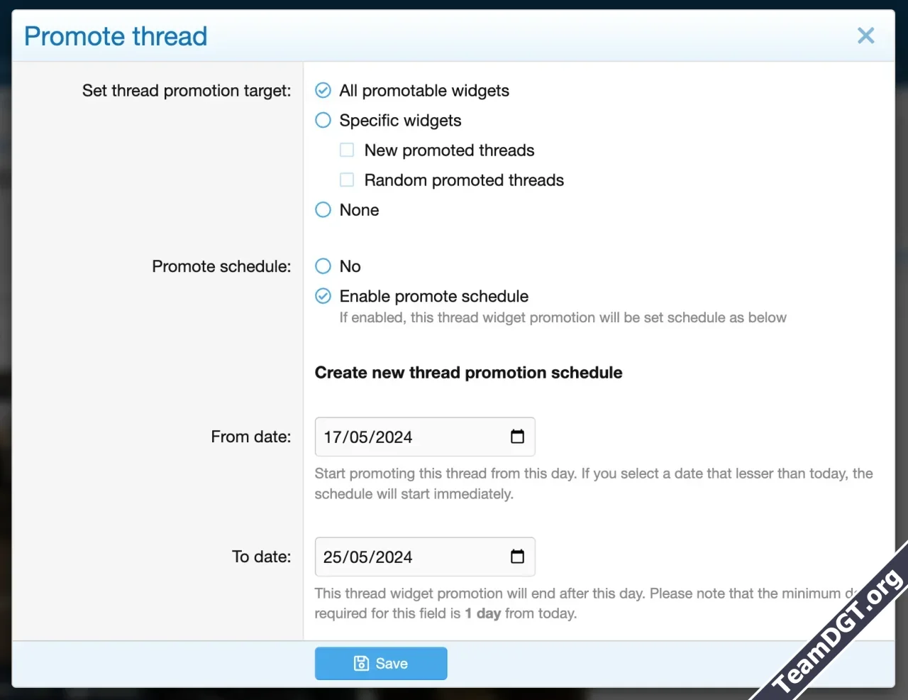 - Sort threads by post date, last message date, first post reaction score, reply count, view count, and promote date.