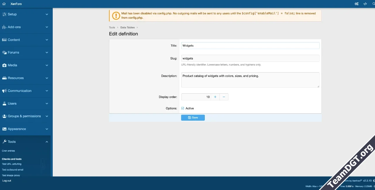- Create a Definition, Go to AdminCP > Tools > Data Tables > Add Definition. Give it a title (e.g., "Product Catalog") and a URL slug (e.g., "products").