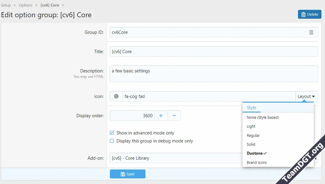 Mostly this is related to Font Awesome handling. See Edit Option Group as Demo.