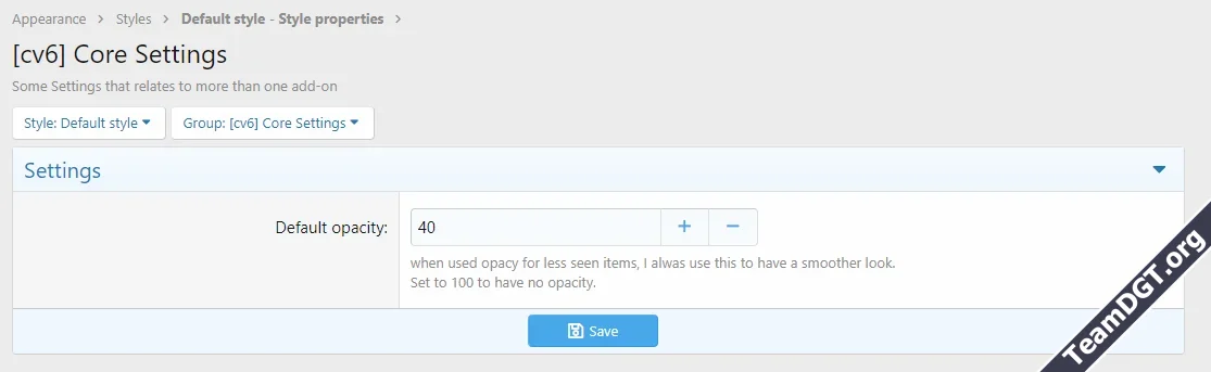 - central opacity setting (at least for all cv6 AddOns)